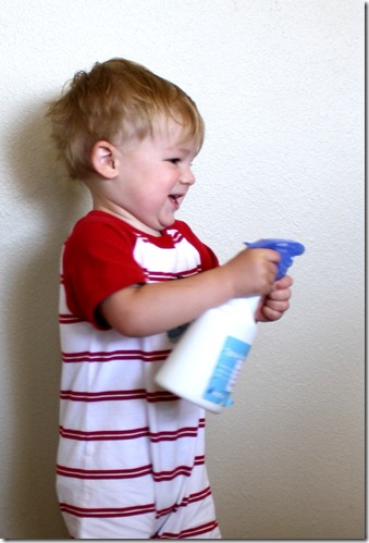 My little guy is only 22 months old – kind of young for crafts. But I wanted something handmade to give the grandmas for Mother’s Day. I saw a tutorial for homemade cards here and though we’d try it, with a twist.
