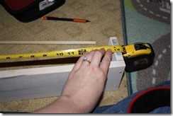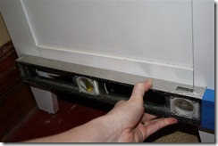 And marked it on my level with a piece of tape. (side note: it doesn’t do a lot of good to use a level when the front legs of the dresser are on the rug and the back legs are not. Oops.)
