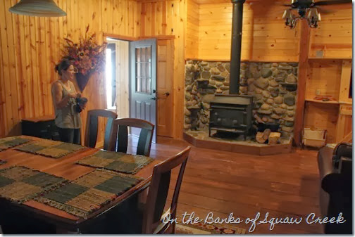 Remember Kris? Her house is next to her in-laws, and there is also a small cabin on the property, used when family comes to visit. I asked (demanded) to be let in for a tour, and of course, Kris obliged.