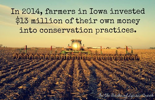 Iowa is leading the nation in agricultural water quality improvements. Through the voluntary Iowa Nutrient Reduction Strategy farmers (and urban constituents) are making changes that make a difference. Since 1999, nitrate levels in the area in question have actually decreased 25%. It’s true, we still have a long way to go, but we must acknowledge the progress and investments that have been made by farmers across the state. CleanWaterIowa.org explains many of the nutrient reduction strategies I mentioned in more detail and profiles farmers who are actually using these strategies.Iowa’s Secretary of Agriculture, Bill Northey, is a strong advocate for water quality measures, and Governor Branstad’s 2015 budget includes $7.5 million for the Water Quality Initiatives (which is up from $2.4 mil in 2014.) These dollars will be used as cost-share incentives for farmers who are trying new water conservation practices.