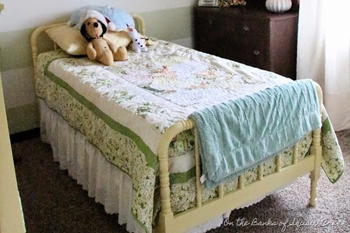 To make this room special for their five year old daughter, the homeowners painted a vintage Jenny Lind bed a soft yellow.