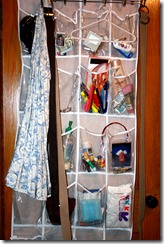 Now – the tylenol is easy to find, the lotions are all in one place, and they are all out of little buddy’s reach on the back of his closet door. (Old house = regular closet doors.)