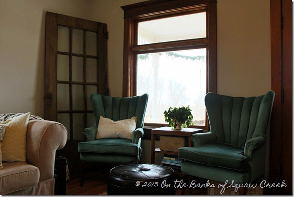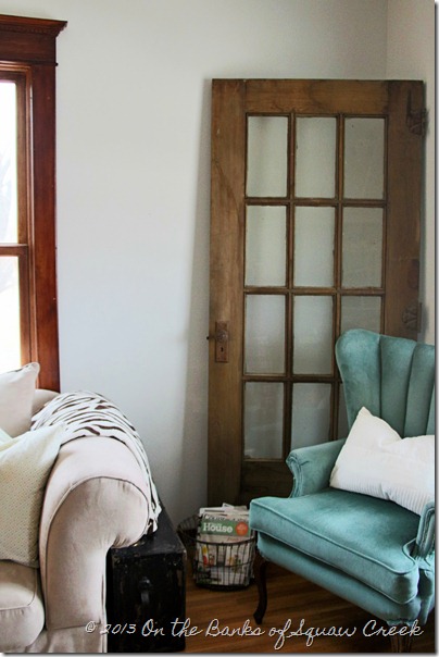 And so, the door has found a new home, nestled in next to my beloved turquoise chairs.