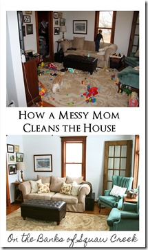 I put the categories in the order of least forgivable to most forgivable. I figure, if someone called to say they were coming over, I'd start with garbage, and if I didn't get all the way to toys, I could just say something like, "The kids have been playing so well today! I didn't want to interrupt them to clean up the toys!"