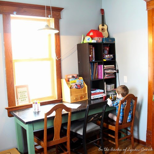 To the right, along the east wall, is a vintage school table. My friend, Jent, brought it all the way from Indiana for me to sell at The HomeShed. But I snapped it up for my house, instead.