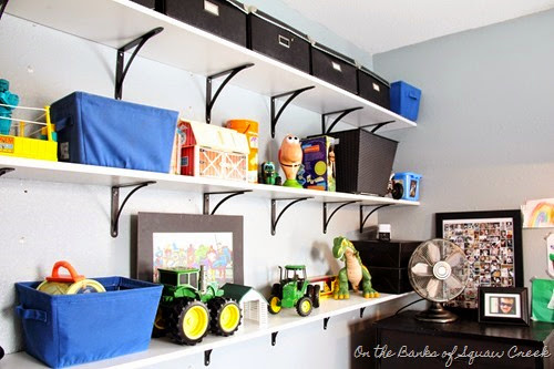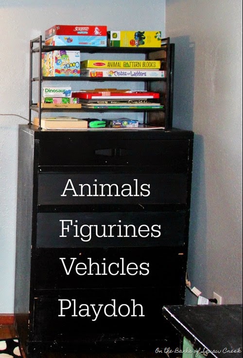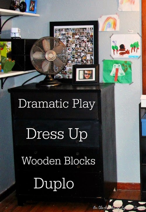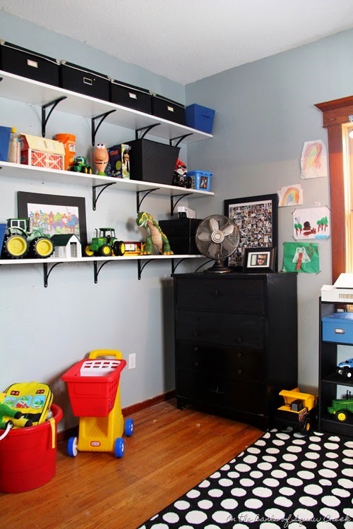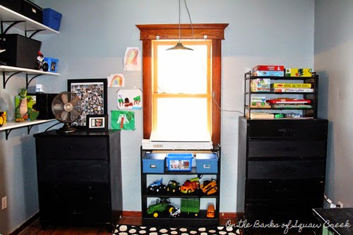 It’s true, this toyroom is completely staged for photos on this blog. It’s never been this clean before and will never be this clean again. And (full disclosure) we have a couple more big totes (okay, fine, there’s 6 of them) full of toys that I shoved around the room, just out of view of the camera, as I took these pictures. So, if you’re looking at this and wondering where all the toys are, that’s where. (And in those dresser drawers, which is a super genius idea I had, if you ask me.)